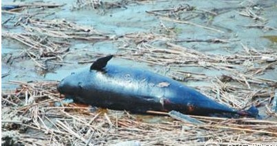 【丹东东港连续发现死亡江豚】6月7日在丹东东港市海防路孤山方向80公里处的一处潮沟里,居民又发现一具江豚尸体,在过去的一周时间,这已是该地出现的第3具了。这只江豚,身长1.6米左右,胸部直径约0.5米,全身肌肤已经发黑,在靠近尾部的地方有两三处浅伤,伤口处已经开始腐烂。