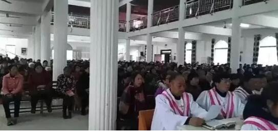 天主教也不例外,这是某地教堂上演的一幕: