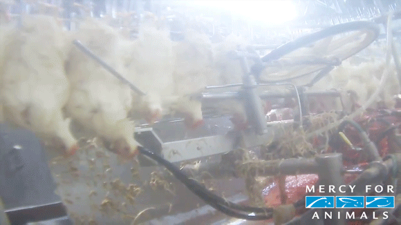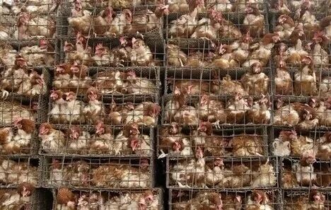 上万只鸡一生被监禁在肮髒的鸡棚中,