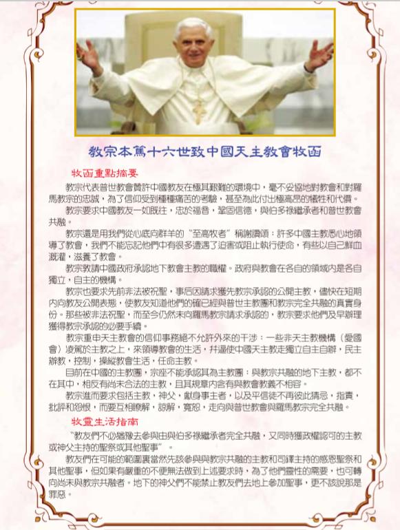 这里我们收集了庇护十二世、教宗若望二十三世、保禄六世,教宗若望保禄二世,本笃十六世教宗致中国的通谕: